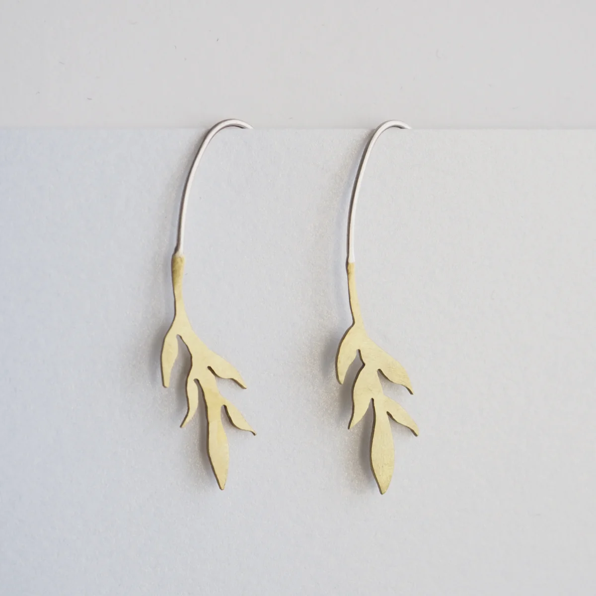Pendientes elaborados en latón y plata, calados con motivos vegetales, elegantes y ligeros, inspirados en las formas orgánicas que nos regala la naturaleza.