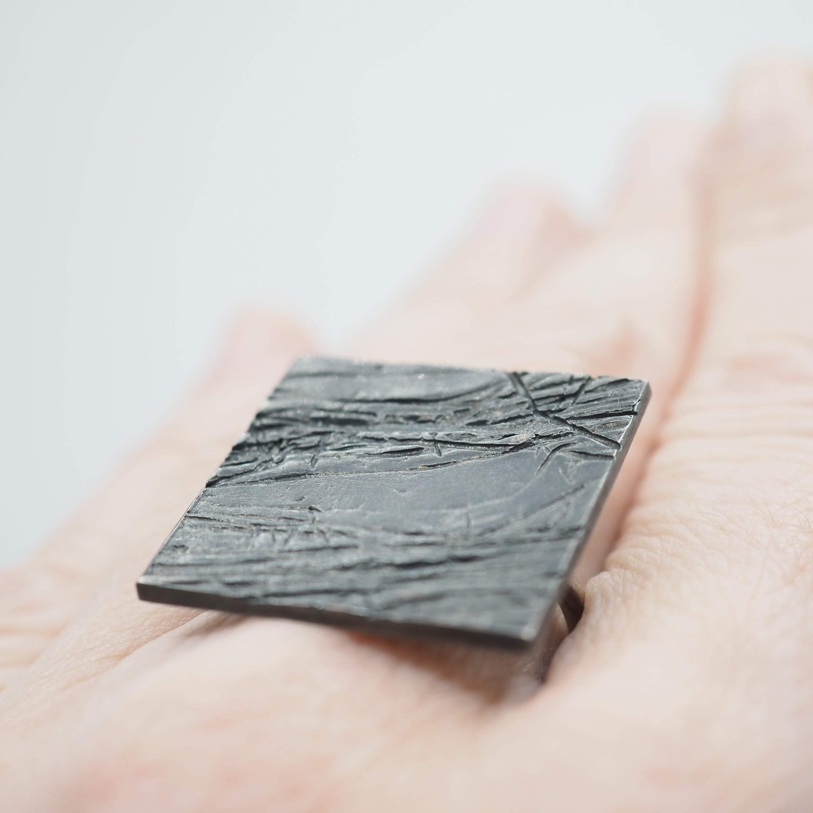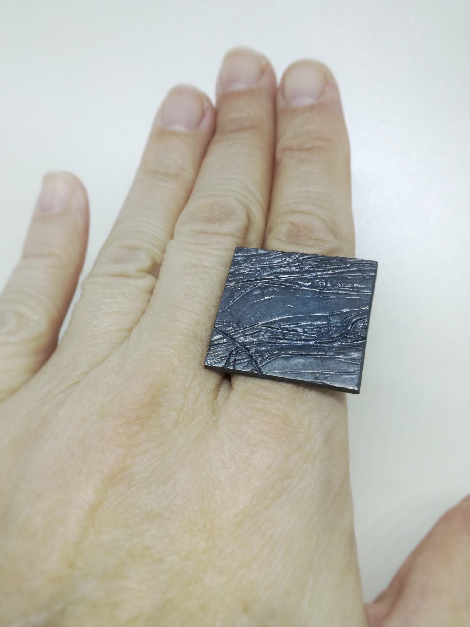 Elegante anillo elaborado en plata de ley oxidada de la colección «Lineas».