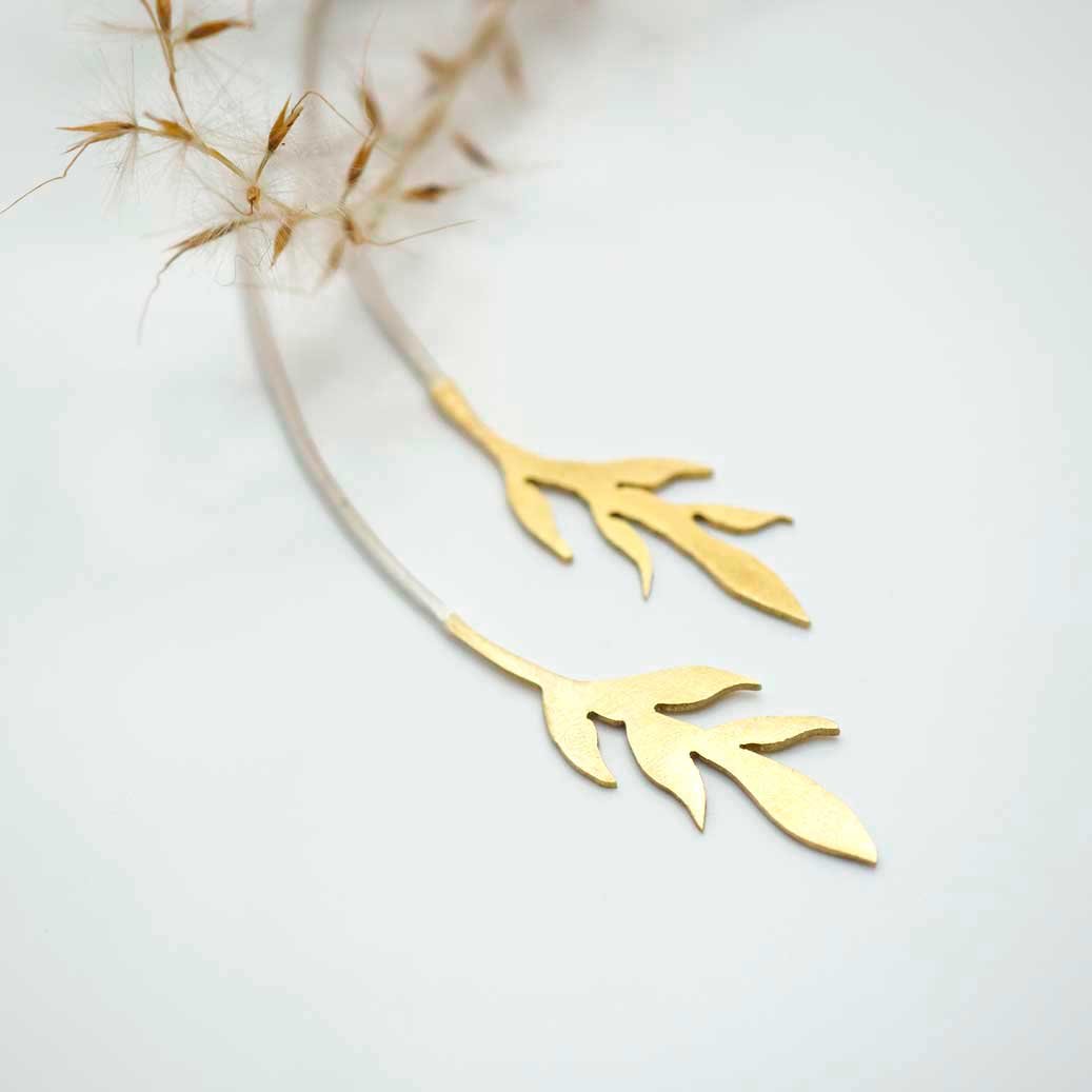 Pendientes elaborados en latón y plata, caladas con motivos vegetales, elegantes y ligeros, inspirados en las formas orgánicas que nos regala la naturaleza.