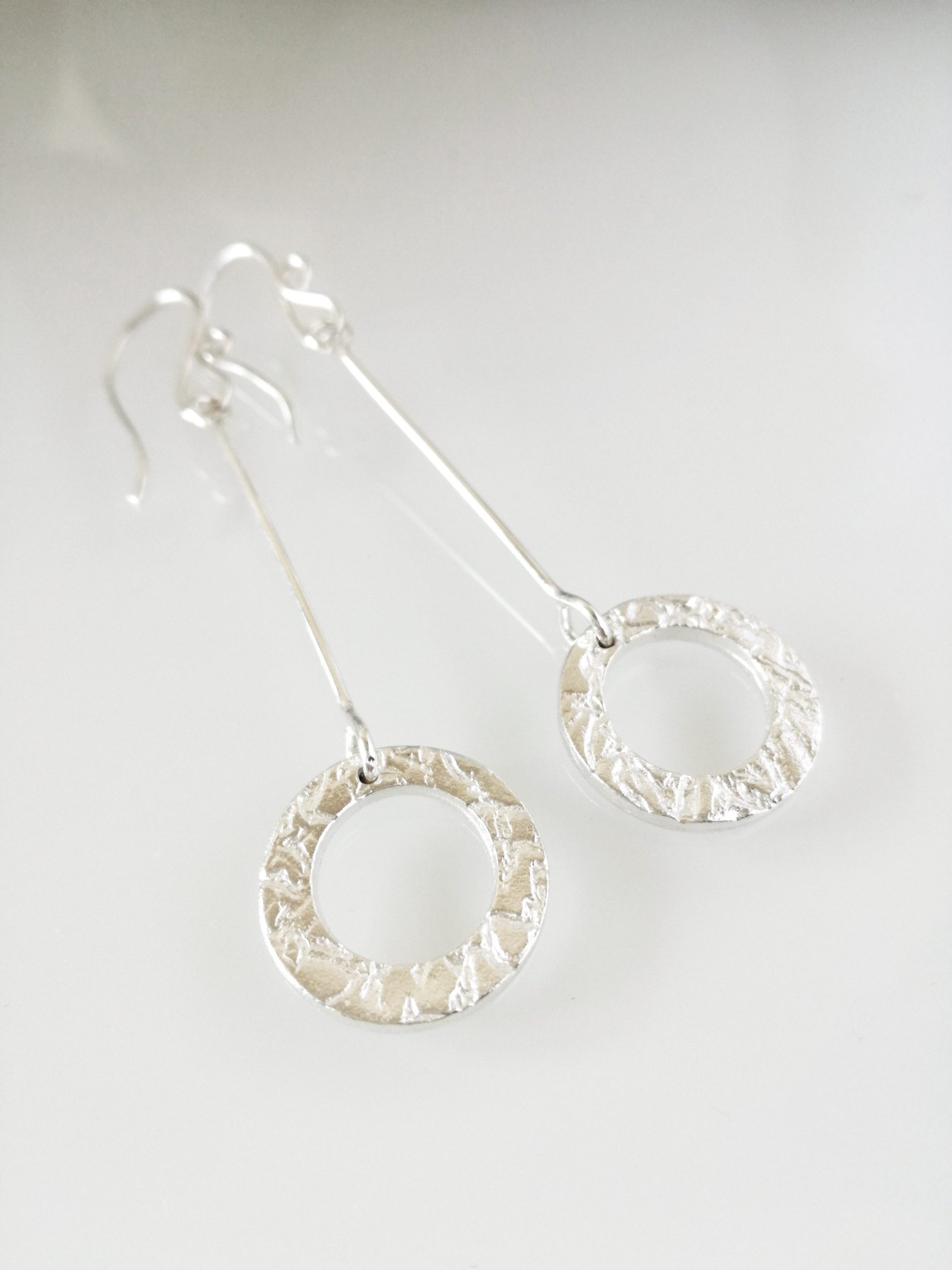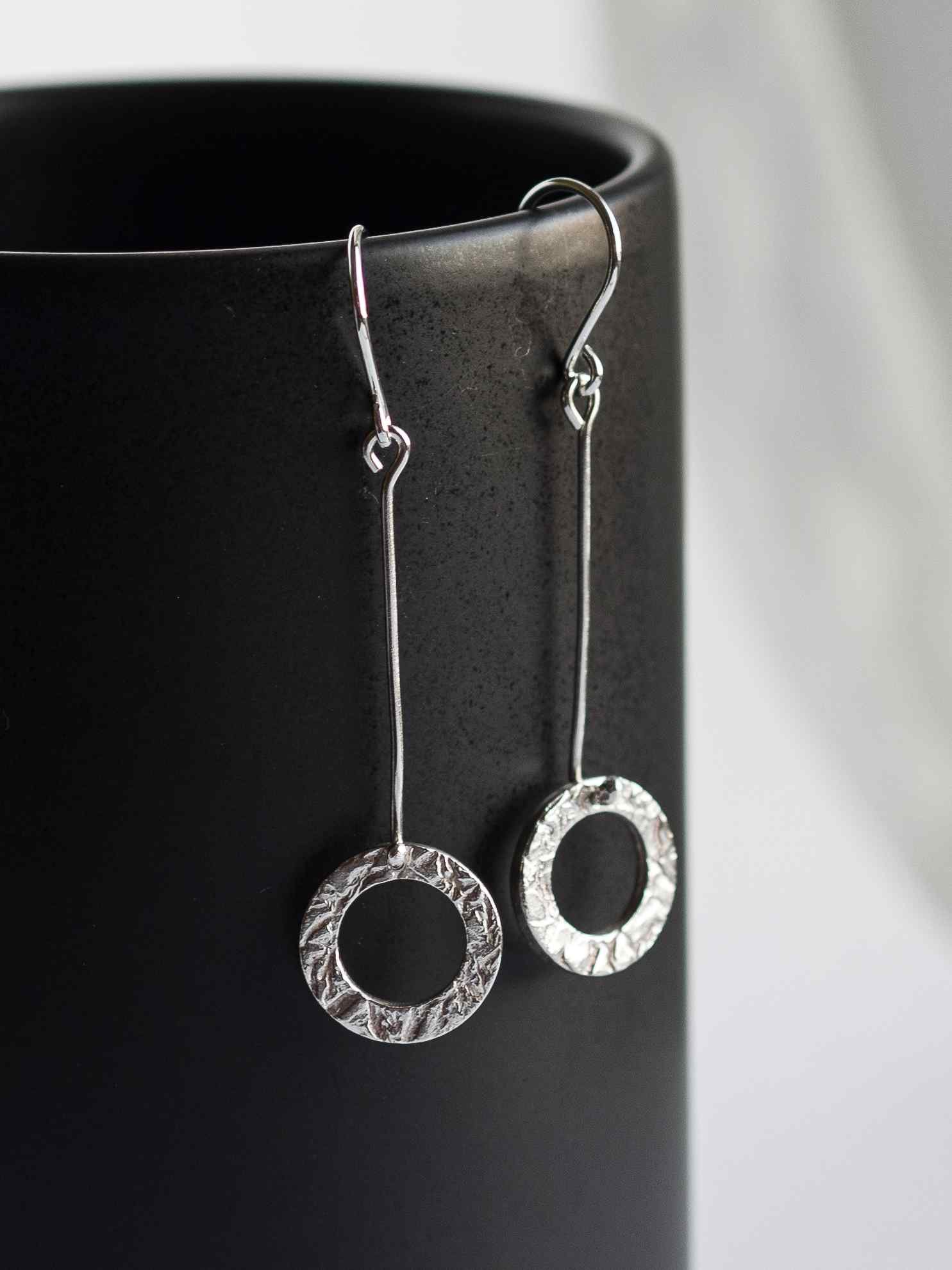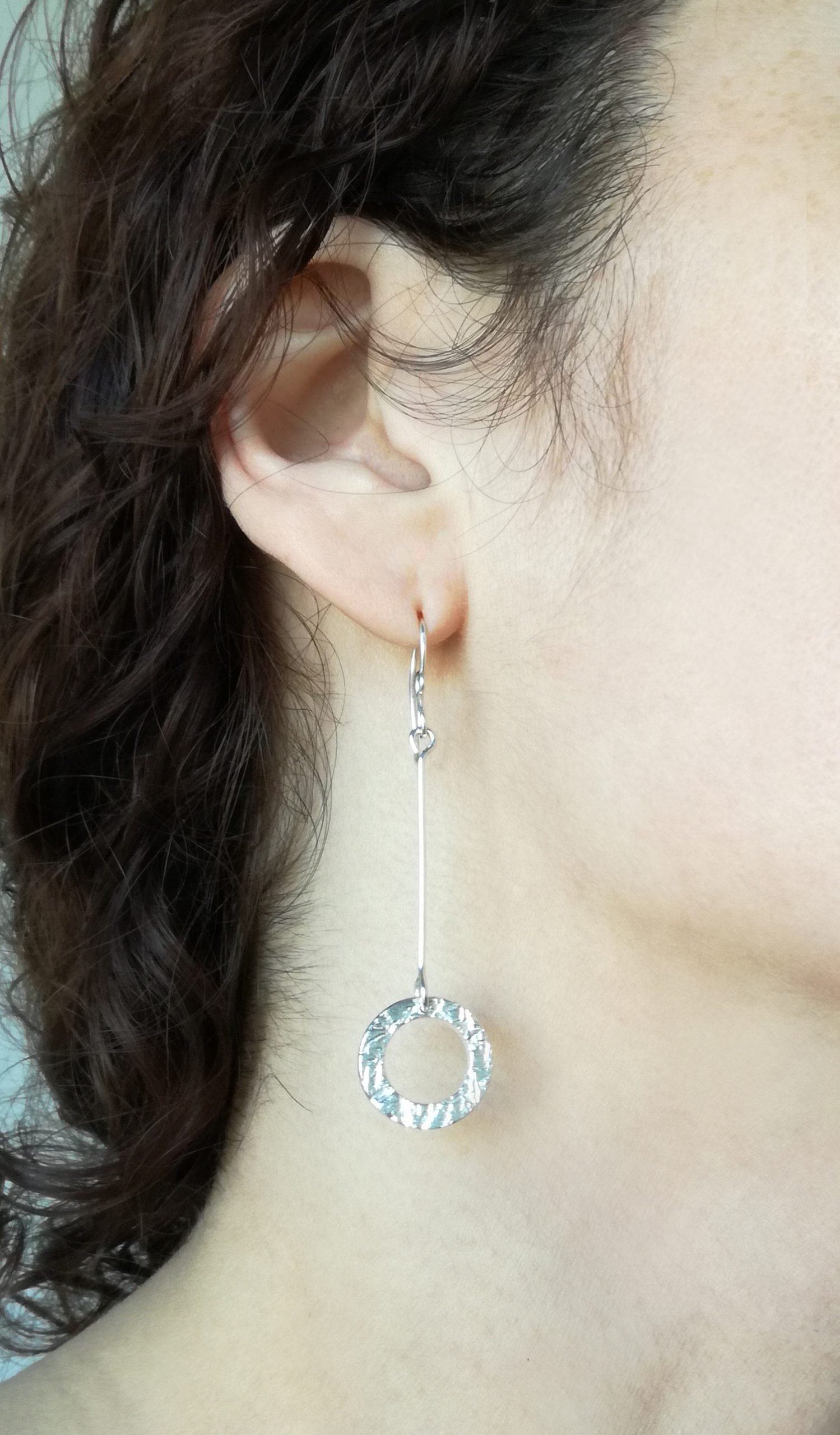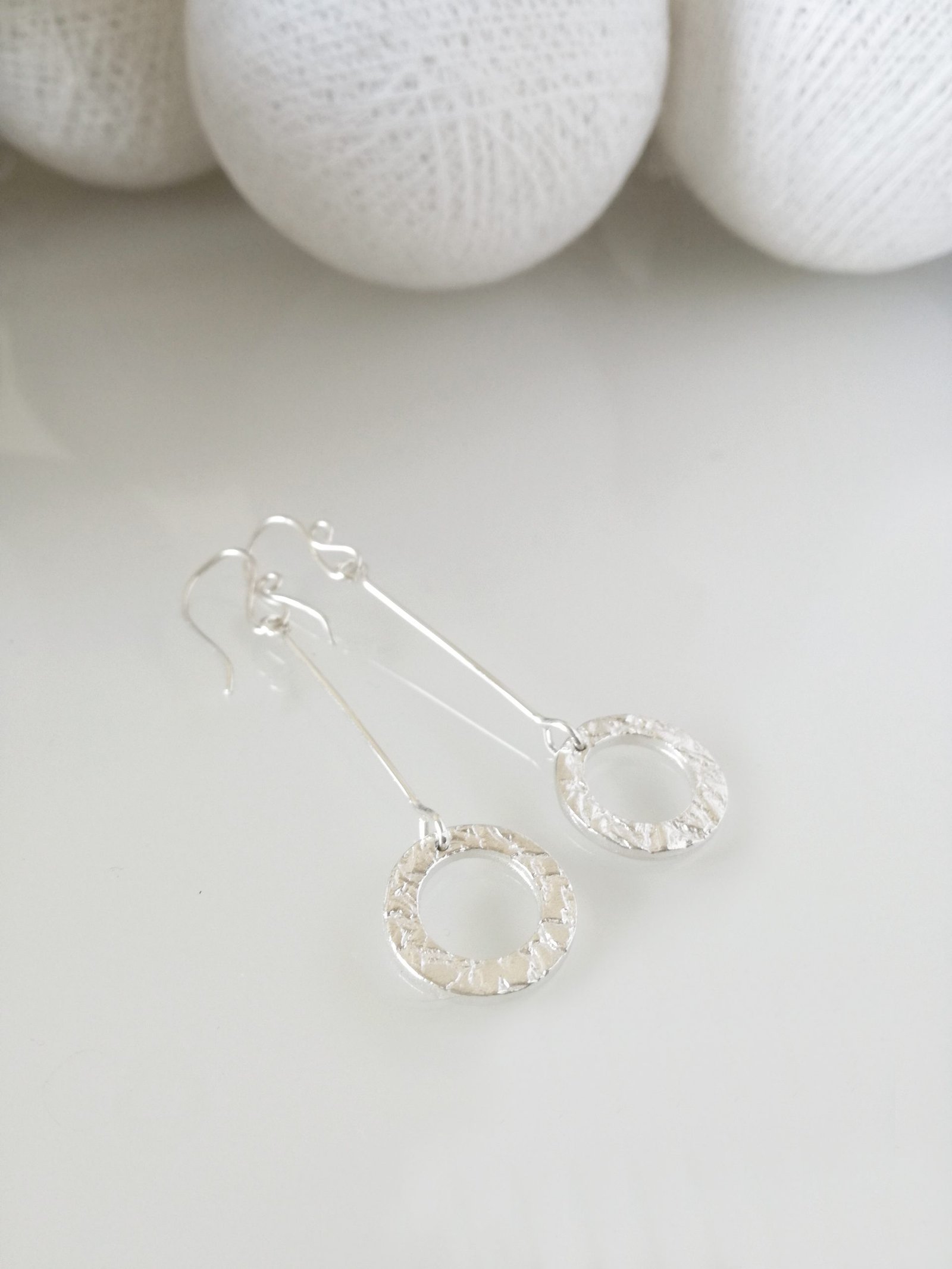 Pendientes diseñados y creados en plata de ley con forma circular y textura orgánica que le aporta originalidad.